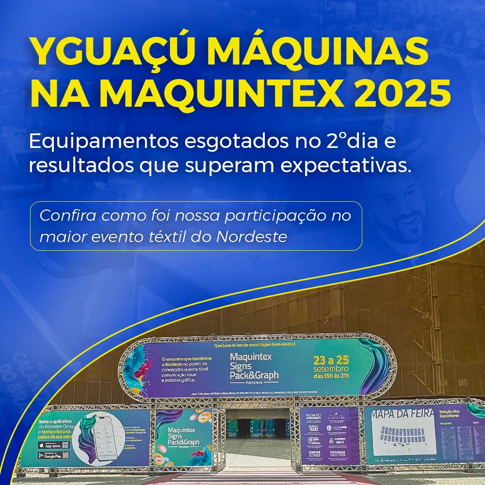A Yguaçú Máquinas esteve presente na Maquintex 2025, realizada de 23 a 25 de setembro no Centro de Eventos do Ceará, em Fortaleza, e marcou presença como uma das principais fornecedoras de equipamentos para sublimação, serigrafia e DTF no Brasil.